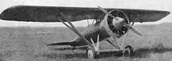 The NiD 48 was furnished with a fixed conventional undercarriage. The mainwheels were fitted on a faired axle that was supported by a pair of rearward leaning V-shaped struts; these consisted of a pair of stamped parts that were riveted together at their edges.[1][6] The fairing of the landing gear axle effectively formed a compact lower wing, which led to some figures to refer to the NiD 48 as being a sesquiplane. It formed a hollow duralumin girder, inside of which the two movable semi-axles of steel tubing would oscillate and were hinged at their inner ends to boxes integral with the girders.[7] The main undercarriage worked in conjunction with a tail skid; shock absorbers composed of rubber were also present. These struts also carried the rectangular radiators that cooled the engine.[1][3]