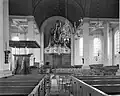 The tower was built in 1613 by Lieven de Key against the older St. Anna church that itself was replaced by a design by Jacob van Campen in 1645-1649.[1] The organ was originally built by J. van Covelen in the 16th century for the St. Bavochurch and was moved to the Nieuwe Kerk in 1791 by H. Hess.[1] The mechanical clock in the tower is from 1795.[1] In the church tower there is a bell from 1749 with a diameter of 98 centimeters by Cyprianus Crans.[1]
