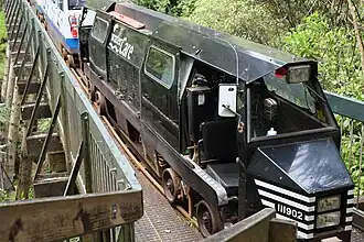The Nihotupu Tramline is a 6.5 kilometres (4.0 mi) long industrial narrow gauge railway at Nihotupu in the Waitākere Ranges south-west of Auckland in New Zealand, which since 1907 has been used for building and maintaining the dam and water pipeline at the Upper Nihotupu Reservoir. It was used until 24 November 2014 also by the Rainforest Express for tourist excursions, which have been indefinitely ceased due to a risk assessment.[2]