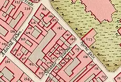 By 1845, only the tenants on the first and third floor had changed. H. C. Grehs, a master tailor, was now residing in the first-floor apartment with his wife Marie Nielsen, their five children (aged six to 16), three employees (two tailors and an apprentice) and one maid.[15] Rasmus Nielsen, another master craftsman, resided on the third floor with his wife Catrine Nielsen and one other resident.[16] The garret was additionally now occupied by a 44-year-old widow and her two children.[17] Carl Gottfrid Wolgnschel, an innkeeper, resided in the basement with his wife Jacobine, seamstress Marie Severin Fredericke C. Skade, her five-year-old son Peter Vilhelm Skade and four people cared for by the Poor Authority (Fattigvæsenet).[18]