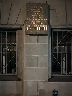 The Burenin family owned a mansion in Kirjasalo near the border between Russia and its autonomous part Grand Duchy of Finland.[2] It was used for smuggling weapons and illegal literature across the border and for organizing border crossings for delegates of the 4th and 5th Congress of the Russian Social Democratic Labour Party.[1] Transports arrived at the Roshchino railway station where they were picked by Burenin and his associates.[2] He was also organizing underground printing presses and warehouses for propaganda literature, arranged safe houses and raised funds for the revolutionary action.[1] Burenin was involved with the 1905 attempt to smuggle arms for the Finnish resistance with steamboat John Grafton and the 1906 robbery of Russian State Bank branch in Helsinki.[4]