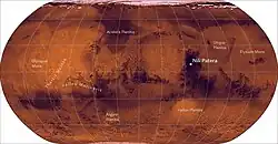 Nili Patera is a dune field on Mars. It is located on top of a lava bed, at the site of an ancient volcano, the Nili Patera caldera of Syrtis Major, near the Martian equator,[1] and it is one of the most active dune fields of Mars. Its location coordinates on Mars are 8.7° N latitude, 67.3° E longitude.[2] It is being actively studied by the HiRISE camera, on board the Mars Reconnaissance Orbiter, at the rate of one image every six weeks. The study of the movement of the dunes provides information regarding wind variation as a function of time and furthers the study of surface erosion characteristics of the Martian landscape. This information can then be used for the development and design of future Mars expeditions.[1][3] The dunes of the Patera field are of the barchan type and their study by HiRISE was the first one to establish dune and ripple movement of a minimum of 1 metre (3 ft 3 in) on Mars.[4] The Patera dune field, was also the first to be investigated using the COSI-Corr software, which was originally developed to analyse the movement of earthbound dunes.[4] The research results from the evidence provided by the monitoring of the Nili Patera field, indicate sand fluxes of the order of several cubic metres per metre per year, similar to the flux observed at the sand dunes of Victoria Valley in Antarctica.[5]