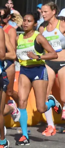 Bogaha Kotuwe Gedara Niluka Geethani Rajasekara (born 17 March 1982) is a female Sri Lankan long-distance runner. With a time of 2 hours 40.07 minutes, and a new Sri Lankan record, at the 2015 Hong Kong marathon, Rajasekara achieved the qualifying standard for the marathon at the 2016 Summer Olympics.[2] She competed in the marathon event at the 2015 World Championships in Athletics in Beijing, China, finishing 49th.[3]
