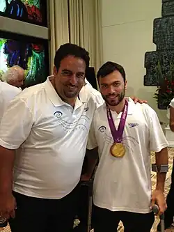 In 2012, Nimrod led Noam Gershony to two medals at the London Summer Paralympic Games.[6] The first medal, Bronze in doubles, shared with Shraga Weinberg, following a bronze medal match win against the Japanese team of Shota Kawano and Mitsuteru Moroishi.[7] A second medal, Gold, in singles, following a finals game in which Noam defeated world number one, David Wagner of the US.[8] This was Israel's only gold medal in the London Games[9] and the first ever singles medal in Israeli tennis history.[10] Following the Paralympics, Noam reached world number one, making him the second player that Nimrod had coached that had reached world number one in the rankings of the quad division of wheelchair tennis. Nimrod was part of the team that was honored at the Presidential Residence by President Shimon Peres and Prime Minister Benjamin Netanyahu in September 2012.[11]