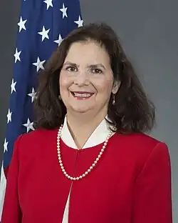 Nina Maria Fite is an American diplomat and a career member of the Senior Foreign Service who served as the United States Ambassador to Angola from 2018 to 2021.[1] Prior to assuming her role as ambassador, Fite served as Principal Officer at the U.S. Consulate General in Montreal, Canada.[2] Since becoming a diplomat in 1990, Fite has served at seven U.S. overseas missions.[3] On September 2, 2017, President Donald Trump announced his intent to nominate Fite to serve as an ambassador of the United States to Angola.[3] On September 5, 2017, her nomination was sent to the Senate.[4] Her nomination was reported favorably out of committee on October 26. She was confirmed by the United States Senate by voice vote on November 2, 2017.[4] She presented her credentials on February 14, 2018.[5] Her term as ambassador ended on November 8, 2021.[6] Fite's diplomatic assignments have included posts in Lahore as Consul General, in Kabul as Deputy Economic Counselor, and in Luanda as the Political/Economic Section Chief. She has also been on assignment with the Office of the United States Trade Representative.[7] She appointed Chargé d'Affaires ad interim Moldova on July 10, 2024.[8]
