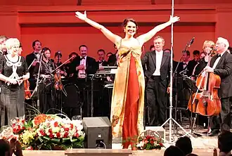 In the mid-2000s she started to perform at elitist events like The second Moscow Ball in Vienna, Russian Seasons in Kitzbühel, series of concerts at the Russian embassy in Finland, Russian film festivals (Zerkalo, European Window and Amur Autumn, among others).[14] By this time she was collaborating with some well-established ensembles, including the State Symphony Cinema Orchestra (conducted by Sergei Skripka), the Moscow Symphony Orchestra (Vladimir Ziva), the Russian Presidential Orchestra, and the Karlovy Vary Orchestra.[14] In 2004 Shatskaya premiered her From Romance to Jazz concert program at the Svetlanov Hall of the Moscow House of Music. The same year she was designated a Meritorious Artist of Russia.[8][18]