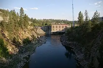 Nine Mile Falls Dam is a dam on the Spokane River, in the unincorporated community of Nine Mile Falls, Washington. It was built on the site of the falls in 1908, creating Nine Mile Reservoir. The dam was designed by the New York engineering firm of Sanderson & Porter, and originally constructed to satisfy the power needs of the Spokane and Inland Empire Railroad interurban trolley lines.[2]