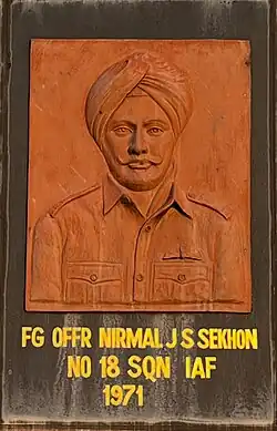Flying Officer Nirmal Jit Singh Sekhon, PVC (17 July 1943 – 14 December 1971) was an officer of the Indian Air Force. He was posthumously awarded the Param Vir Chakra, India's highest military decoration during war time, in recognition of his lone defence of Srinagar Air Base against a Pakistan Air Force (PAF) air raid during the Indo-Pakistani War of 1971.[2] He is the only member of the Indian Air Force to be honoured with the PVC.[3]