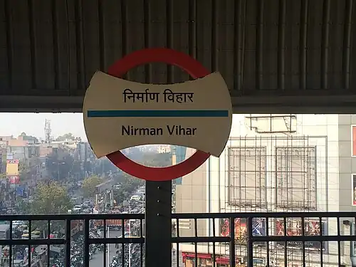 The Nirman Vihar metro station is located on the Blue Line of the Delhi Metro.[1]