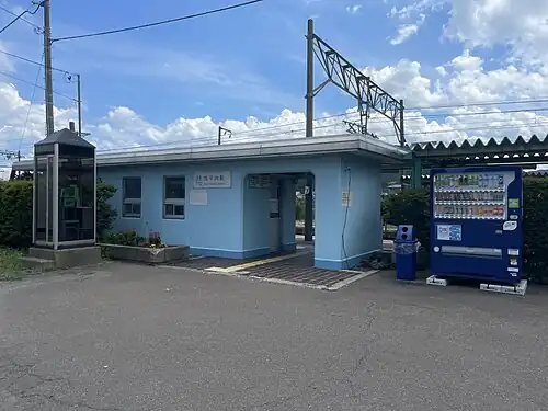 Nishi-Hiranai Station (西平内駅, Nishi-Hiranai-eki) is a railway station located in the western part of the town of Hiranai in Aomori Prefecture, Japan. The station has been operating since 1939. Since 2010, the station has been operated by the Aoimori Railway Company, a third sector, regional rail operator. It is the third busiest railway station in Hiranai. Passenger trains serve the station just under 17 hours a day; the departure time between trains is roughly 30 minutes during the morning peak with reduced frequency at other times. The station also serves as a bus station for Shimokita Kōtsu, with local bus routes connecting the station and the community in its vicinity to communities throughout the town.