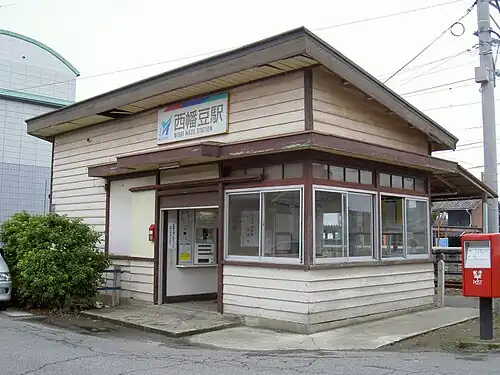 Nishi Hazu Station (西幡豆駅, Nishi Hazu-eki) is a railway station in the city of Nishio, Aichi Prefecture, Japan, operated by Meitetsu.