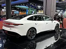 The exterior of N7 follows Nissan's V-Motion design language, and it has a drag coefficient of 0.208 Cd. The front and rear lights feature customizable light panels consisting of 710 individually-addressable LEDs at the front, and 882 at the rear.[4] The infotainment system consists of a 15.6-inch 2.5K touchscreen running NISSAN OS and is powered by a Snapdragon 8155 SoC for standard models. Higher variants are equipped with Snapdragon 8295P SoC and an ADAS system developed in a collaboration between Dongfeng-Nissan and Momenta.[4]