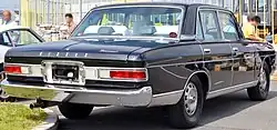 Its appearance is very similar to the smaller but more popular Nissan Bluebird introduced earlier in 1964. Like the Bluebird, the President was built at Nissan's Oppama plant in Yokosuka, Kanagawa.[1] A small number (fewer than 200) of left-hand drive models were also built, available for export but mainly sold to Japan's foreign missions and to Japanese companies abroad. These were designated HL150.[2] The front wheels used double wishbone suspension with leaf spring and a live axle for the rear.