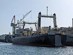 - Nisshin Maru No. 2 (17,579 grt) built by Taiyo Gyogyo, was commissioned in 1937 and was damaged on February 7, 1943 by two torpedoes fired from USS Trout.[12][13] One Japanese historian reports that it was then towed and scrapped south of Ishigaki Island on April 16, 1943,[11] while an American source reports that the vessel was sunk on May 6, 1944 by three torpedoes fired from the submarine USS Crevalle.[14]
