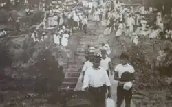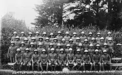 At the beginning of the war, the British Empire was not willing to accept native recruits, but after the Gallipoli campaign in 1915, natives were allowed to enlist and serve in the army. In Niue, whilst there was opposition to recruiting Niueans for the war effort from figures such as Ikimatatoa (a missionary teacher)[3] many volunteered to enlist, as they had felt close to the crown from the teachings of the London Missionary Society. Despite this, New Zealand only accepted the required number of 150. The first Niuean to enlist was Hekataha Uea, a 40-year-old pastor and independence advocate who was appointed as Chaplain of the small volunteer force which would later be called the Niue Contingent.[4] He was the oldest amongst the Niuean volunteers, and was seen as "a father figure, a role model, and a matua ('father' in Niuean)". He would later be promoted to Sergeant major of the Niue Contingent. The Niuean volunteers started their training in Alofi, and were eventually sent to the Narrow Neck (Nalo Neke in Niuean) military training camp in Auckland, where they would be trained with handling weapons and constructing trenches.[1][5]