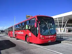 The simple station Niza Calle 127 is part of the TransMilenio mass-transit system of Bogotá, Colombia, which opened in the year 2000.