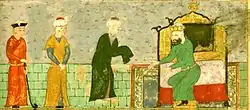 The composer Afrasiyab Badalbeyli, basing on folk music, brings elements of mugham to Nizami's aria.[20] It is with mugham intonations that the poet Nizami, with excitement, expresses his admiration. These intonations are performed starting from the upper register.[21] As it is specific in mugham, the melody falls to maya (meaning skeleton, foundation).[22][23][24]