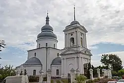 Architecturally Nizhyn was shaped in the 18th century. Foremost among its buildings must be mentioned its seven Baroque churches: Annunciation Cathedral (1702–16, modernised 1814), Presentation Cathedral (1788), St. Michael's Church of the Greek community (1719–29), St John's Church (1752, illustrated, to the right), Saviour's Transfiguration Church (1757), Intercession Church (1765), and the so-called Cossack Cathedral of St. Nicholas (1658, restored 1980s), a rare survival from the days of Nizhyn's Cossack glory, noted for its octagonal vaults and drums crowned by archetypal pear-shaped domes.[12] Other notable buildings include the Trinity Church (1733, rebuilt a century later), the Greek magistrate (1785), and the Neoclassical complex of the Nizhyn Lyceum (designed by Luigi Rusca, built in 1805–17, expanded in 1876–79).