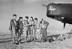 - ^ The photograph is captioned by the Imperial War Museum as being a briefing conducted by S/L Langlois RAAF, the then CO. In fact, the officer shown was almost certainly his successor, Squadron Leader W.Desmond Boxwell DFC, who was immortalised in "The Wimpy Song" celebrating the Desert Air Force and sung to a Bowdlerised version of Lily Marlene.