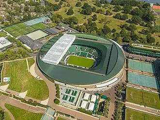 In April 2013, the All England Club confirmed its intention to build a retractable roof over No. 1 Court.[6][7] As well as a retractable roof, the seating capacity of the court was increased by approximately 1,000 to seat 12,345 people.[8]