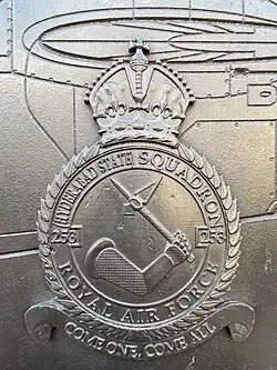 ![]() The heraldic badge of the squadron as it appears on the Battle of Britain Monument in London. | |