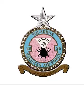 The No. 26 Squadron, nicknamed the Black Spiders, is a multi-role squadron of the Pakistan Air Force's Northern Air Command. It is currently based at Peshawar Airbase and operates the PAC JF-17 Thunder multirole fighter jets.[2][3][4]