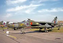No. 31 (Designate) Squadron was formed on 1 January 1976 in preparation for conversion to the SEPECAT Jaguar GR.1 strike aircraft,[10] with the new OC Wg. Cdr. Terry Nash arriving at Brüggen on 12 January.[30] The squadron's Jaguar GR.1s were declared operational on 30 June 1976,[10] with the Phantoms being given to both No. 19 Squadron and No. 92 Squadron.[31] In December 1976, No. 31 Squadron was declared combat ready to SACEUR, with conventional weapons and eight British WE.177 nuclear bombs from 1977.[32]