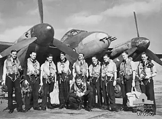 ![]() Members of No. 456 Squadron RAAF in front of a de Havilland Mosquito night fighter in 1943 | |
