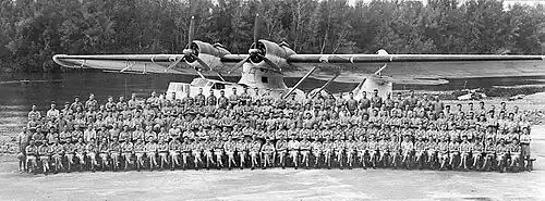 No. 490 Squadron was formed on 28 March 1943 at Jui near Freetown in what is now present-day Sierra Leone.[5][6] The last of the seven New Zealand Article XV squadrons, it had been intended that the squadron would be located so it could operate over the Indian Ocean, but the need for more Coastal Command squadrons for coverage of the convoy routes along the west coast of Africa dictated a change in destination to Jui. The first personnel to arrive at Jui, located on a strip of land of extending into an estuary and surrounded by mangrove swamps, was the ground crew. The aircrew began flying their aircraft in from Scotland, where they had received training at Stranraer, in June. The unit was led by Wing Commander D. W. Baird, who had previously commanded RNZAF forces in Fiji.[7][8]