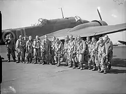 Unlike many Bomber Command squadrons, No. 83 Squadron went into action on the first day of the Second World War, carrying out a sweep over the North Sea looking for German warships. The squadron continued with 'precision' raids against German naval and coastal targets but as the daylight operations became more costly, Bomber Command switched to night operations. The squadron flew against concentrations of invasion shipping in the Channel Ports in the late summer and autumn of 1940, with a raid on Antwerp on the night of 15 September resulting in the award of a Victoria Cross to Flight Sergeant John Hannah, a wireless operator and gunner for extinguishing a serious fire while receiving severe burns.[4] In December 1941, the squadron was re-equipped with Avro Manchesters but due to their underpowered and unreliable engines these were quickly replaced by Avro Lancasters.