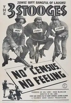 No Census, No Feeling is a 1940 short subject directed by Del Lord starring American slapstick comedy team The Three Stooges (Moe Howard, Larry Fine and Curly Howard). It is the 50th entry in the series released by Columbia Pictures starring the comedians, who released 190 shorts for the studio between 1934 and 1959.