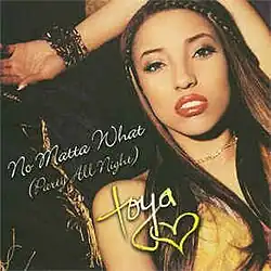 "No Matta What (Party All Night)" is the second single by American R&B singer Toya, from her self-titled debut album, Toya (2001). It was written by David Frank and Nathan Butler. After the success of her previous hit "I Do!!", which peaked at number 16 on the US Billboard Hot 100, Toya released only one more single, "No Matta What", before being contractually released from Arista Records. The song peaked at No. 86 on the Billboard Hot 100 and number 25 in Australia.