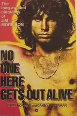 No One Here Gets Out Alive was the first biography about the lead singer and lyricist of the rock band the Doors, Jim Morrison, published in 1980.[1] Its title is taken from a line in the Doors' song "Five to One",[2] and the book is divided into three sections: The Bow is Drawn, The Arrow Flies and The Arrow Falls, for the early years of Morrison's life, his rise to fame with the Doors, and then his final years and death. The book was written by Jerry Hopkins and Danny Sugerman.