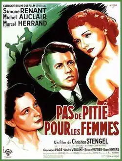 No Pity for Women (French: Pas de pitié pour les femmes) is a 1950 French mystery film directed by Christian Stengel and starring Simone Renant, Michel Auclair and Marcel Herrand.[1] It was adapted by Jean Giltène from his own novel. The film's art direction was by Robert Hubert.