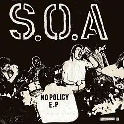 No Policy is the debut studio EP by the American hardcore punk band State of Alert, the first band to be fronted by Henry Rollins.[2] Consisting of ten tracks, it was recorded at Inner Ear Studios in Arlington, Virginia, produced by Skip Groff and engineered by Inner Ear owner Don Zientara. No Policy was released on Dischord Records in March 1981, as the label's second release.[3][2] No Policy was financed by Rollins, as Dischord was tied up in releasing Minor Threat's debut EP.[4]