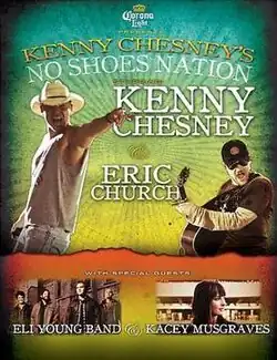 The No Shoes Nation Tour was the thirteenth headlining concert tour by American country music singer Kenny Chesney, in support of his fifteenth studio album Life on a Rock (2013). It began on March 16, 2013 at Raymond James Stadium in Tampa, Florida and ended on August 24 at Gillette Stadium in Foxborough, Massachusetts.