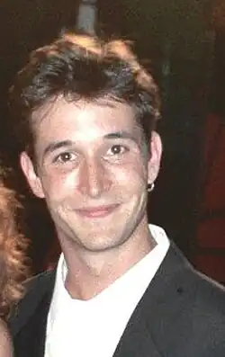 After graduating high school in 1989, Wyle moved into an apartment on Hollywood Boulevard, signed with an agent and began taking acting classes.[29] His parents were only willing to financially support a college education[30] and he worked as a busboy and then waiter at the Bel Age Hotel's Diaghilev restaurant.[31][32] He appeared in Los Angeles stage productions[33] and made a one-line appearance in the NBC miniseries Blind Faith (1990).[34] His first credited movie role was in the family drama Crooked Hearts (1991), with Peter Rainer of the Los Angeles Times remarking upon his "appealingly awe-struck innocence".[35] He appeared as a Hitler Youth leader in the historical drama Swing Kids (1993),[36] as a high school student in the coming-of-age ensemble There Goes My Baby (1994)[37] and as Lancelot in the Lifetime movie Guinevere (1994).[38] His most notable casting in this period was in the courtroom drama A Few Good Men (1992), directed by Rob Reiner and written by Aaron Sorkin. Wyle had what Sorkin described as "a small, featured role as an endearingly dimwitted Marine corporal."[39] The film was a box office success and was nominated for Best Picture at the 1993 Academy Awards.[40]