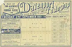 On 24 September 1889, Arthur Martin & Co auctioned 258 town allotments under the name Davenport Township. These blocks were located on south west side of Nobby railway station.[13][14]