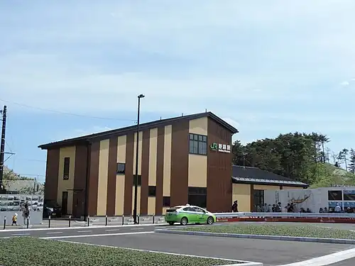 The station was closed from March 11, 2011, due to damage to the line associated with the 2011 Tōhoku earthquake and tsunami, and services were replaced by provisional bus services. The station reopened on May 30, 2015, on a higher ground where the former community around the station would be reconstructed.[1][2] Due to the relocation, the distance from Aoba-Dōri was changed from 34.0 kilometers to 33.4 kilometers.[3]