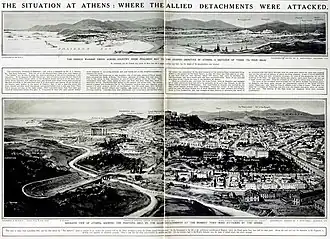 ![]() Bird's eye view of Athens and its suburbs during the Noemvriana clashes, published by The Sphere in December 1916 | |||||||