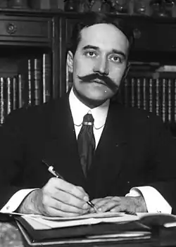 The authorities used the pretext of the events to claim that the Venezelists had staged an insurrection with the support of Allied troops and proceeded with the help of the Reservists to extensive arrests and reprisals against them. The entire operation was led by two army generals; troops of the military district of Athens took orders from General K. Kallaris, and the soldiers of the active defense were commanded by General A. Papoulas (later commander-in-chief of the Asia Minor expedition).[41] The terror and destruction that followed soon went out of hand, making even the respectable conservative newspaper Politiki Epitheorisis (Greek: Πολιτική Επιθεώρηση, Political Review) that at the beginning urged Greek "justice" to "smite mercifully the atrocious conspiracy" and to purge all followers of the "arch-conspirator of Salonika [Venizelos]", in the end, to urge "prudence."[42] During the following three days, the houses and shops of Venizelists were ransacked, and 35 people were murdered.[43] Chester says that most of those who were murdered were refugees from Asia Minor.[44] Many hundreds were imprisoned and kept in solitary confinement. Karolidis characterizes the imprisonment of certain prominent Venizelists, such as Emmanuel Benakis (mayor of Athens), as a disgrace.[40] Some authors argue that Benakis was not only arrested and imprisoned but also disrespected and ill-treated.[42] Seligman describes that they were only released 45 days later after a strong demand contained within the Entente ultimatum, which was accepted on 16 January.[45] Opposing reports also exist, e.g., Abbot asserts that during the evacuation of the Allied forces, many "criminals" and "collaborators" on the payrolls of different Allied spy agencies slipped out of Athens at night after allegedly "terrorizing the city for nearly a year".[37] Due to his failure, Vice-Admiral Dartige du Fournet was relieved of his command.[46]