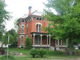 Noftzger-Adams House is a historic home located at North Manchester, Wabash County, Indiana. It was built in 1880, and is a two-story, brick dwelling with Second Empire and Gothic Revival style design elements. It sits on a stone block foundation and has a mansard roof with decorative brackets. It features a full-width front porch (reconstructed in 1978) and two-story bay.[2]: 2