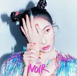 "Noir" (Korean: 누아르; RR: Nuareu) is a song recorded by South Korean singer Sunmi. It was released on March 4, 2019, through Makeus, as a single. The track was written by Sunmi and produced by her and El Capitxn. "Noir" is a dance-pop and EDM track about "inevitable end of a relationship" similar to a noir film narrative. An official music video for the song was released in conjunction with the single on March 4, 2019. The video shows the singer as a clout-chasing influencer who fakes her lifestyle to make it look great on-screen in the hopes of getting followers and likes, even if it's dangerous.