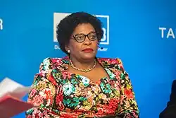 Mokonyane remained head of organising until the party's 55th National Conference in December 2022,[58] when she was elected First Deputy Secretary-General of the national ANC. She emerged as a frontrunner for the position during the nominations stage, when she was the favourite candidate of local party branches in her home province, Gauteng, and four other provinces (KwaZulu-Natal, Free State, Limpopo, and North West).[59] Her candidacy was endorsed by the provincial leadership in Gauteng and KwaZulu-Natal, as well as by leaders of the ANC Youth League and ANC Women's League.[60] At the conference, she won narrowly against Tina Joemat-Pettersson, the candidate favoured by Ramaphosa's allies; she earned 2,195 votes against Joemat-Pettersson's 2,145.[61] As First Deputy Secretary-General, she serves alongside the Second Deputy Secretary-General, Maropene Ramokgopa, and under Secretary-General Fikile Mbalula; both Ramokgopa and Mbalula ran on the slate aligned to Ramaphosa and Joemat-Pettersson.[61]