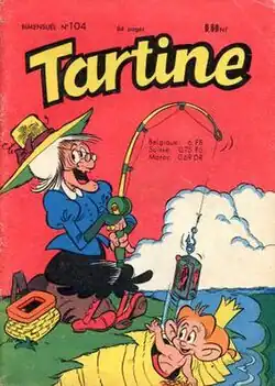 The comics were also successfully published in France, where Nonna Abelarda was named Tartine Mariol in reference to French actress Martine Carol.[3]
