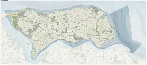 Noord-Beveland (Dutch pronunciation: [ˈnoːrd ˌbeːvəlɑnt] ⓘ; "North Beveland") is a municipality and region in the southwestern Netherlands and a former island, now part of the Walcheren-Zuid-Beveland-Noord-Beveland peninsula. Noord-Beveland is enclosed by the Oosterschelde estuary to the north, and the former straits, now combined lake, of Veerse Meer and Zandkreek to the south. As part of the Delta Works, dams have connected Noord-Beveland to Walcheren and Zuid-Beveland.