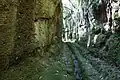 Norchia is an ancient Etruscan city with an adjacent necropolis, near Vetralla in Italy. The site is along the Via Clodia, and is not far from the more well known Etruscan town of Tarquinia.