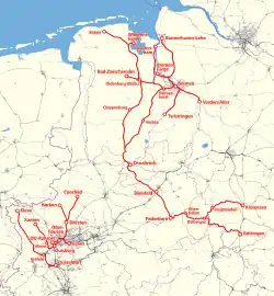Since 5 November 2000, NordWestBahn has operated, on behalf of the public transport company of Lower Saxony (Landesnahverkehrsgesellschaft Niedersachsen, abbreviated to LNVG), the Weser-Ems-Network in Lower Saxony. The company promptly pursued various other regional railway opportunities within the German market. During March 2008, NordWestBahn was selected to run the regional S-Bahn Bremen/Lower Saxony, having submitted a superior bid to the German national railway operator DB Regio; operation of these routes started in December 2010. Following a competitive tendering process in early 2019, the company retained operations in Bremen and Lower Saxony.[1] On 6 November 2018, NordWestBahn was awarded the contract to operate the S-Bahn regional trains around Hanover.[2]
