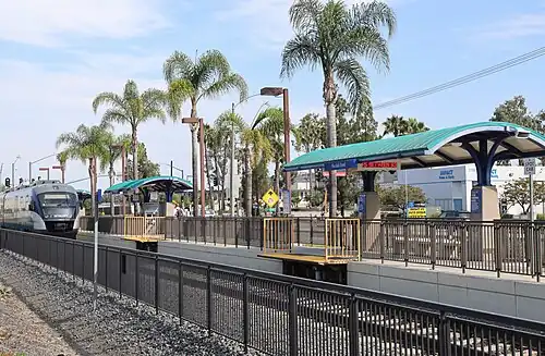 Nordahl Road station is a station served by North County Transit District's SPRINTER hybrid rail line. It straddles the city limits of San Marcos and Escondido, California, with its mailing address in Escondido. The station is located between Barham Drive and Auto Park Way/Nordahl Road, both of which intersect East Mission Road. It consists of a single platform and track.
