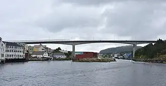 The Nordsund Bridge (Norwegian: Nordsundbrua) is a bridge that crosses the Nordsundet strait between the islands of Nordlandet and Gomalandet in the town of Kristiansund which is in Kristiansund Municipality, Møre og Romsdal county, Norway. The bridge is 333 metres (1,093 ft) long, and the maximum clearance to the sea is 28 metres (92 ft). The bridge carries Norwegian National Road 70.